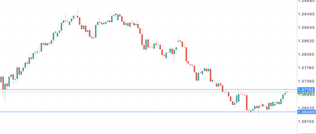 4小时级别来看,美加短线阻力构筑于1.3710区域水平,日内汇价若可突破该区域限制,有望上行对1.3760区域水平发起挑战。下行结构来看,下方1.3640区域水平构成汇价短线支撑,日内汇价若失守于该区域防线,将面临下行测试1.3595区域水平之风险。